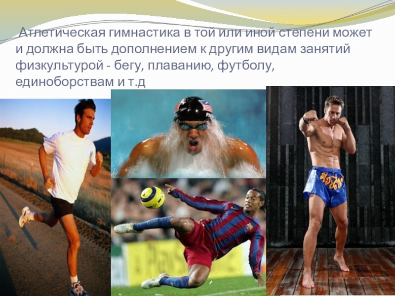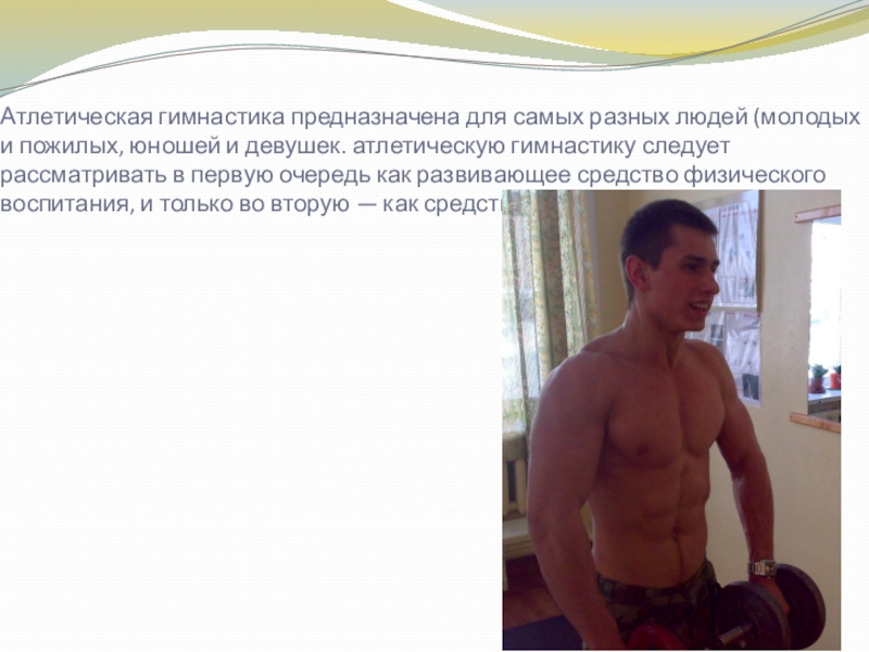 Слайд 7 Атлетическая гимнастика в той или иной степени может и должна быть