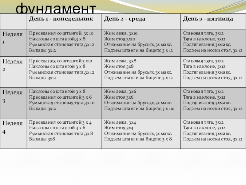 1) оздоровительный с наращиванием мышечной массы