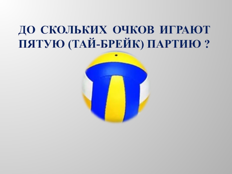 Слайд 10До скольких очков играют пятую (тай-брейк) партию ?