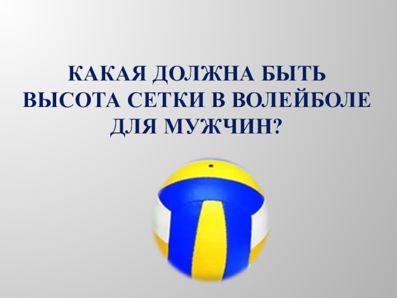 Слайд 5Какая должна быть высота сетки в волейболе для мужчин?