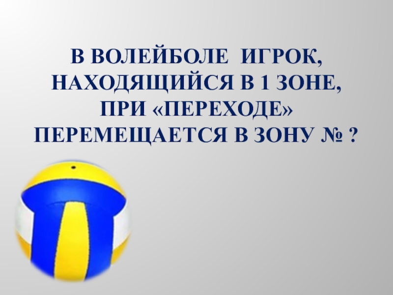 В волейболе игрок, находящийся в 1 зоне, при «переходе» перемещается в зону № ?6