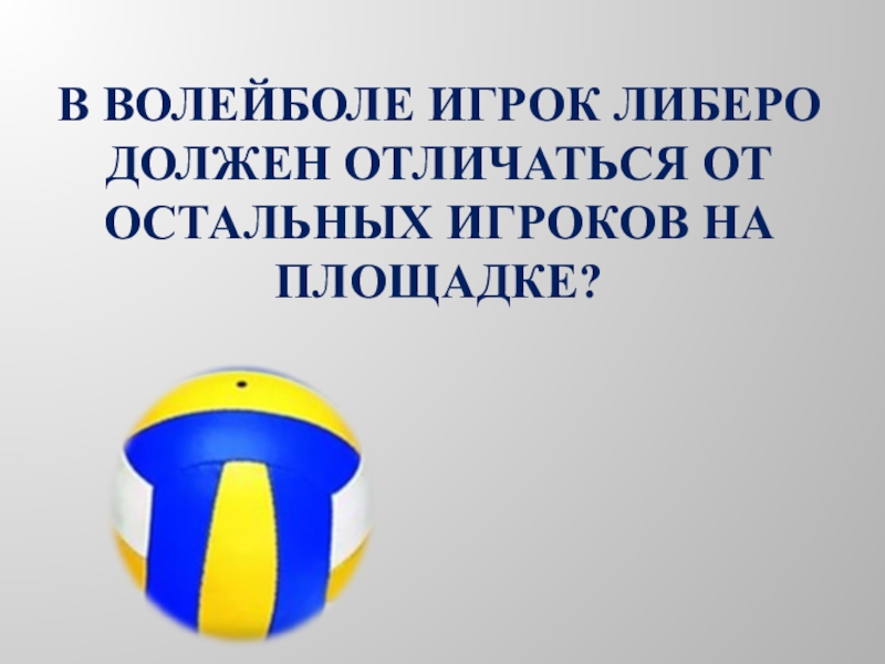 Слайд 8В волейболе игрок либеро должен отличаться от остальных игроков на площадке?