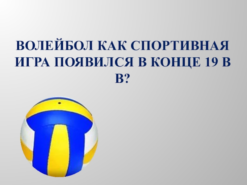 Слайд 2Волейбол как спортивная игра появился в конце 19 в в?