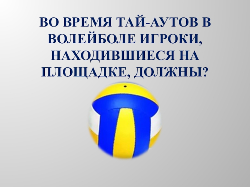 Слайд 16Во время тай-аутов в волейболе игроки, находившиеся на площадке, должны?
