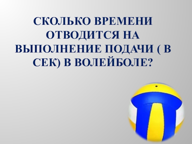 Слайд 13Сколько времени отводится на выполнение подачи ( в сек) в волейболе?