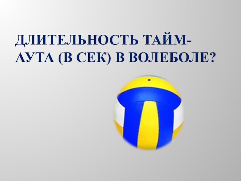 Слайд 15Длительность тайм-аута (в сек) в волеболе?