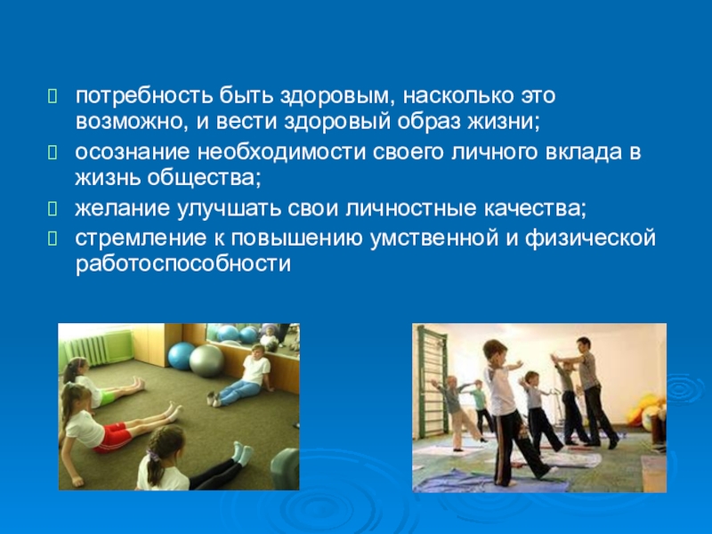 потребность быть здоровым, насколько это возможно, и вести здоровый образ жизни;