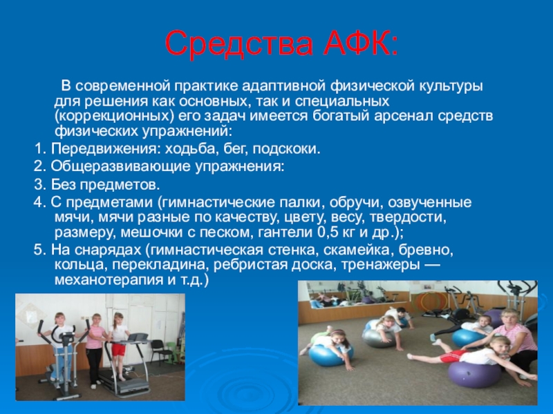 так и специальных (коррекционных) его задач имеется богатый арсенал средств физических упражнений: