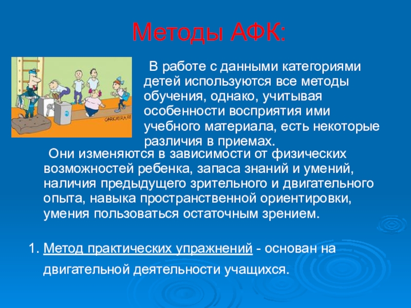 1. Метод практических упражнений - основан на двигательной деятельности учащихся.
