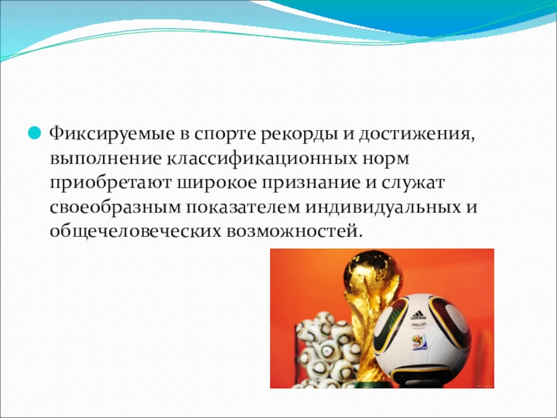 Фиксируемые в спорте рекорды и достижения, выполнение классификационных норм приобретают широкое