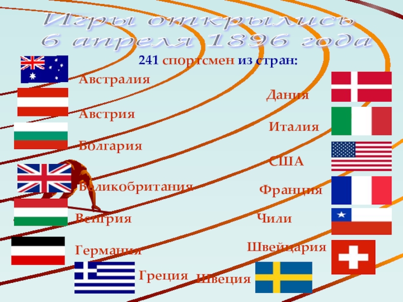 Первое участие – в 1912 году в Стокгольме (летние игры)