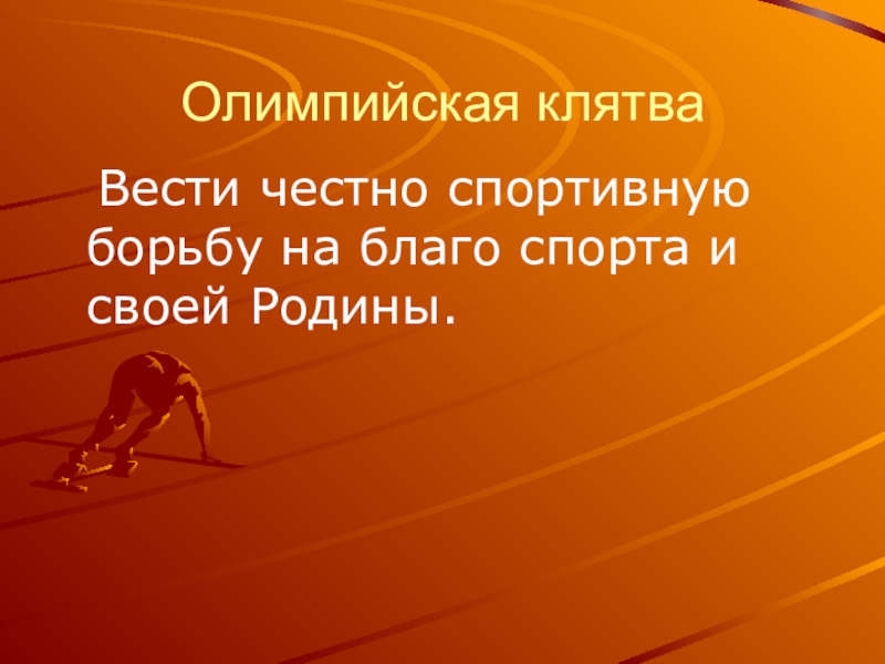 Вести честно спортивную борьбу на благо спорта и своей Родины.