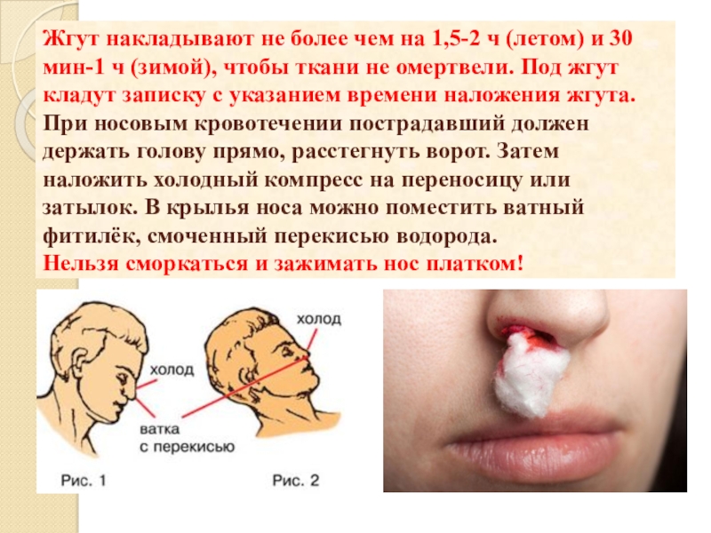 Слайд 12Жгут накладывают не более чем на 1,5-2 ч (летом) и 30