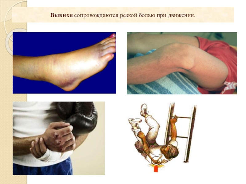 Слайд 14Вывихи сопровождаются резкой болью при движении.