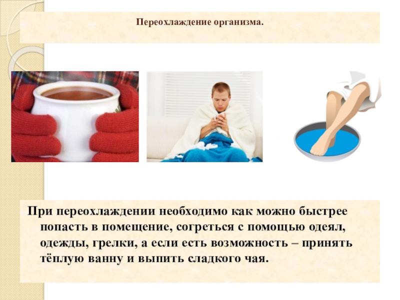 При переохлаждении необходимо как можно быстрее попасть в помещение, согреться