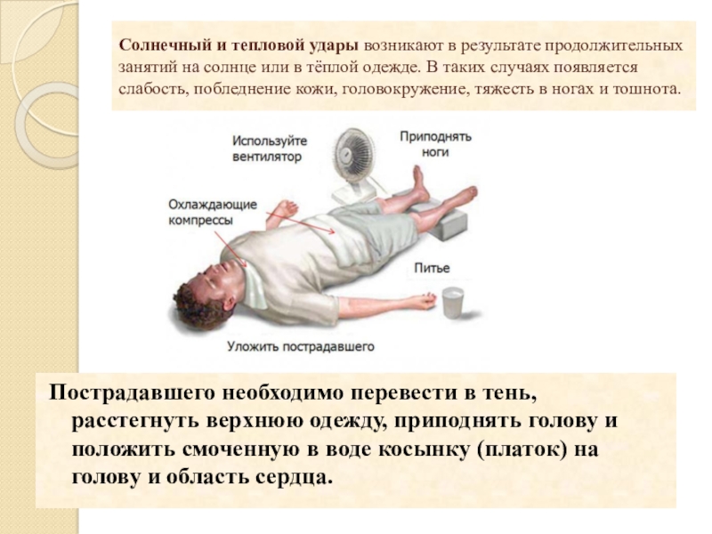 Слайд 18Солнечный и тепловой удары возникают в результате продолжительных занятий на солнце