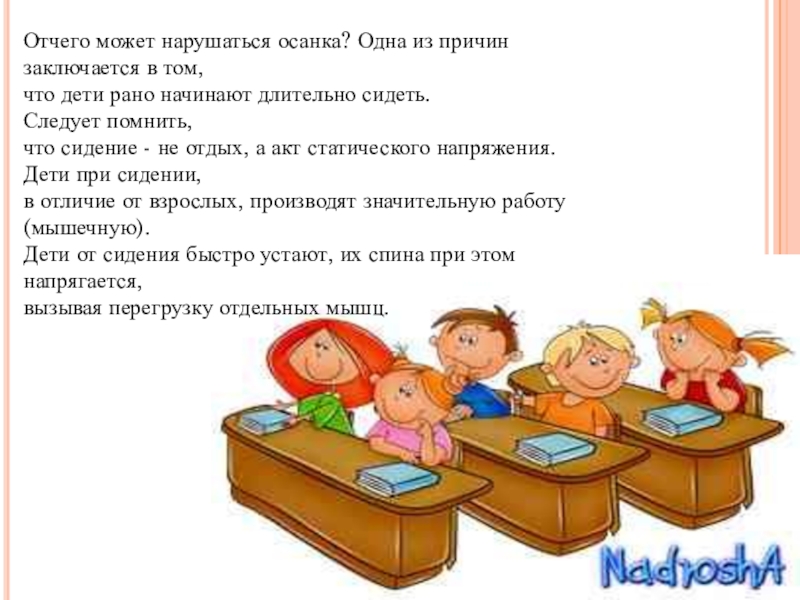 Слайд 3Отчего может нарушаться осанка? Одна из причин