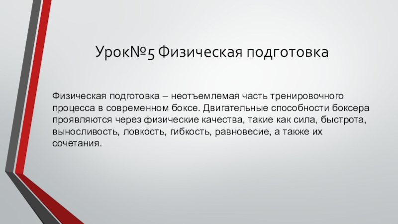 боксе. Двигательные способности боксера проявляются через физические качества, такие как сила, быстрота, выносливость, ловкость, гибкость, равновесие, а также их сочетания.