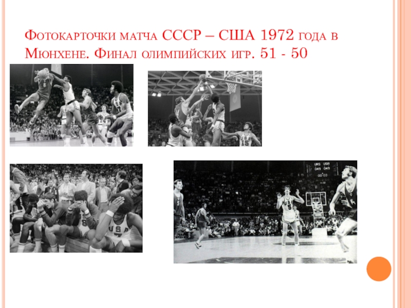 Слайд 3Фотокарточки матча СССР – США 1972 года в Мюнхене. Финал олимпийских