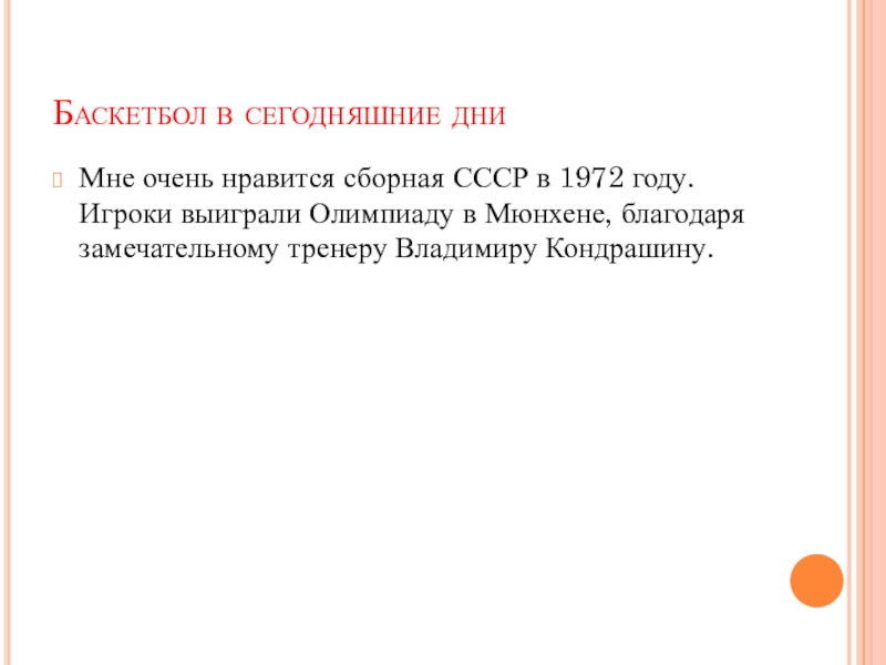 Игроки выиграли Олимпиаду в Мюнхене, благодаря замечательному тренеру Владимиру Кондрашину.