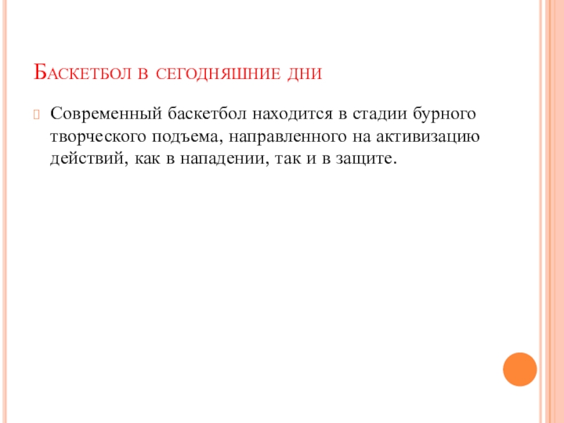 Современный баскетбол находится в стадии бурного творческого подъема,