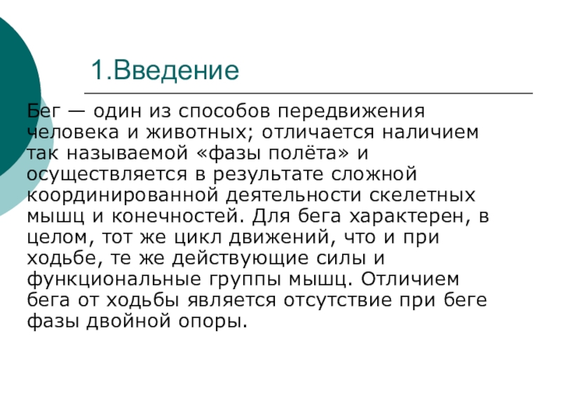 Бег — один из способов передвижения человека и животных; отличается наличием