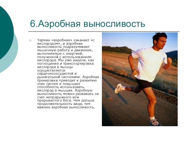 Термин «аэробная» означает «с кислородом», и аэробная выносливость подразумевает мышечную