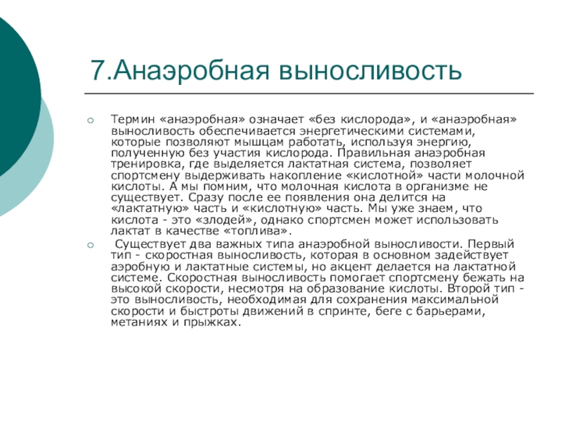 Термин «анаэробная» означает «без кислорода», и «анаэробная» выносливость обеспечивается энергетическими