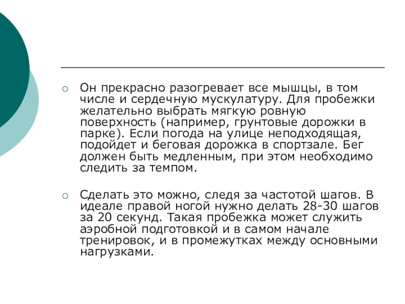 Такой вид беговой тренировки обычно проводится в ходе разминки и заминки,