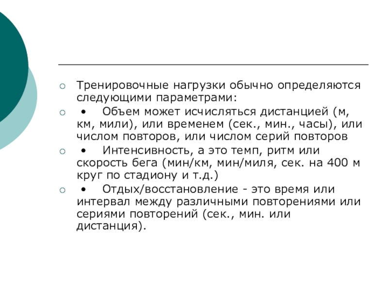 Тренировочные нагрузки обычно определяются следующими параметрами: