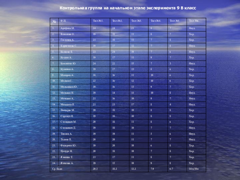 Слайд 14Контрольная группа на начальном этапе эксперимента 9 В класс