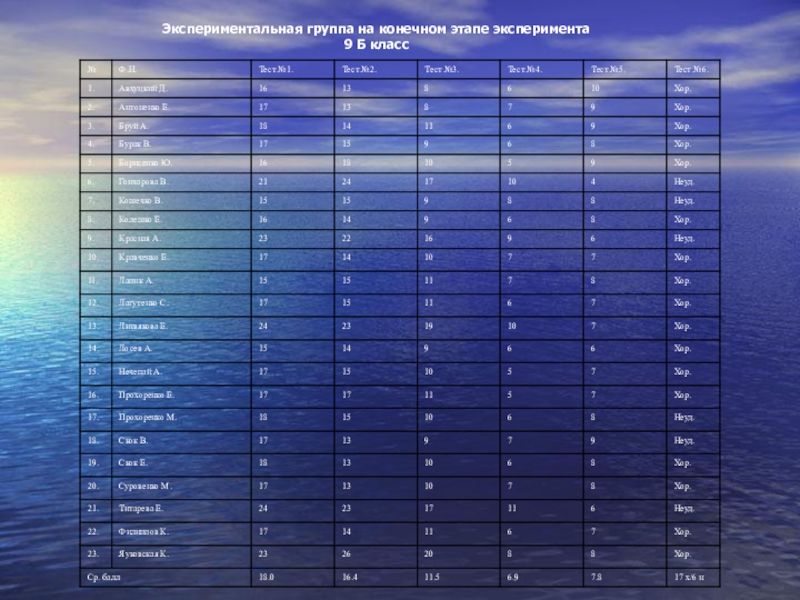 Слайд 35Экспериментальная группа на конечном этапе эксперимента