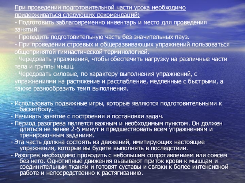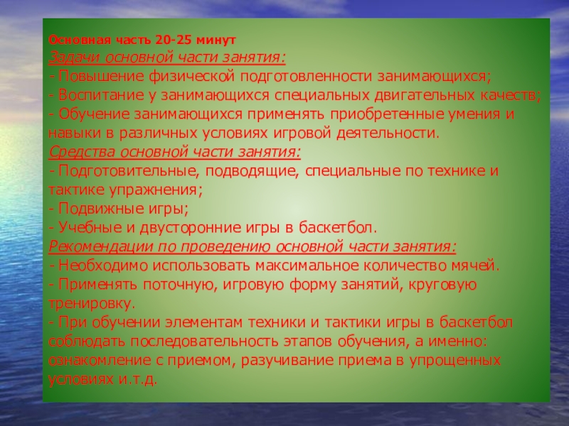 - При обучении элементам техники и тактики игры в баскетбол соблюдать последовательность этапов обучения, а именно: ознакомление с приемом, разучивание приема в упрощенных условиях и.т.д.