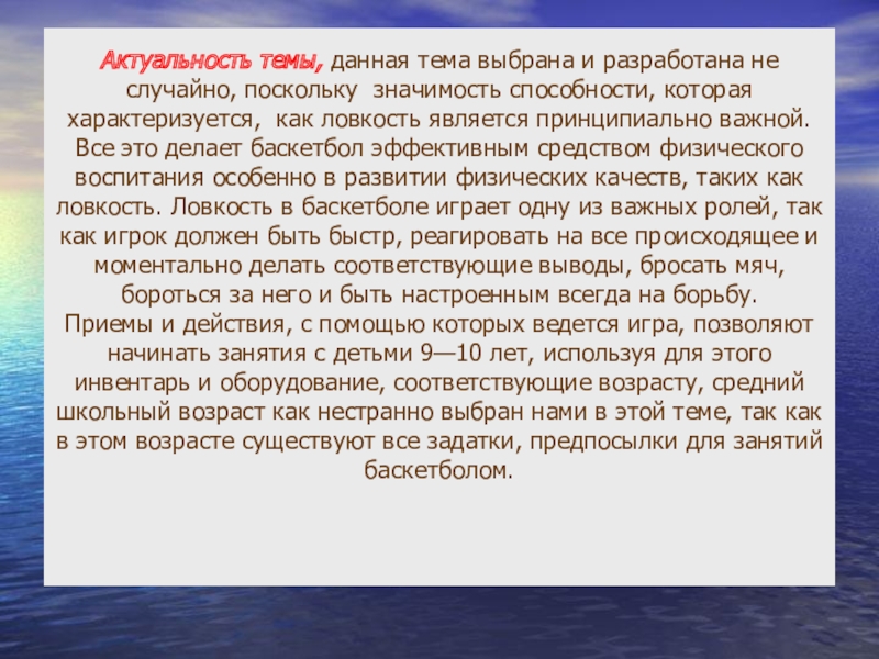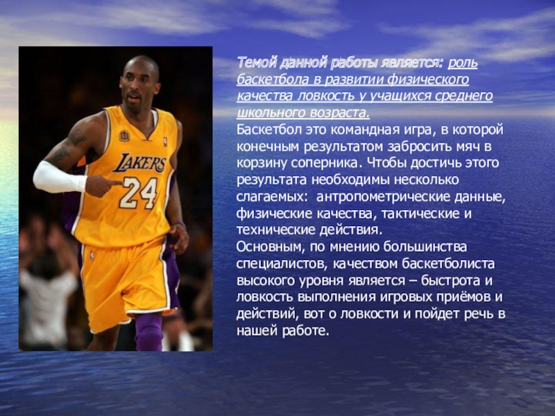 Слайд 5Темой данной работы является: роль баскетбола в развитии физического качества ловкость
