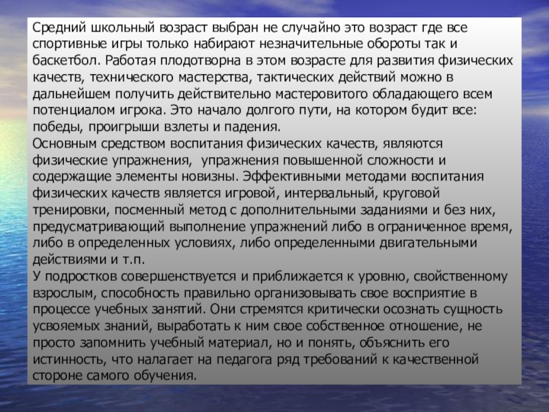 Слайд 9Средний школьный возраст выбран не случайно это возраст где все спортивные