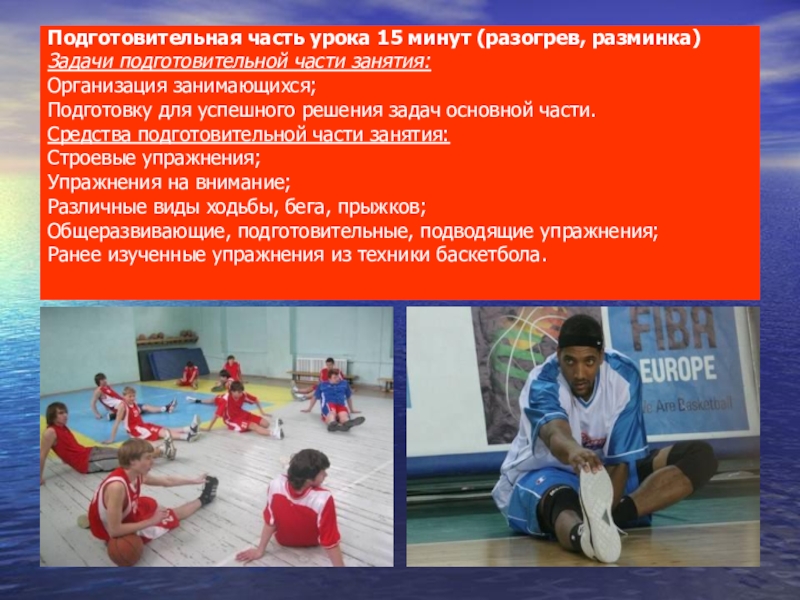 В экспериментальной группе урок по баскетболу строился следующим образом: