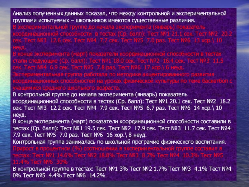 Слайд 40Анализ полученных данных показал, что между контрольной и экспериментальной группами испытуемых