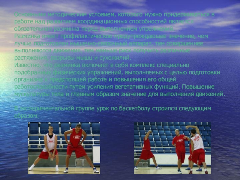 Слайд 18Основными методическим условием, которого нужно придерживаться в работе над развитием координационных