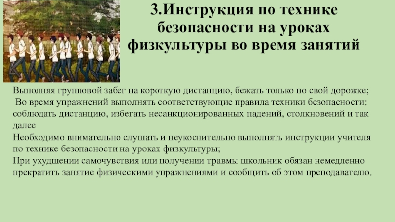 3.Инструкция по технике безопасности на уроках физкультуры во время занятий