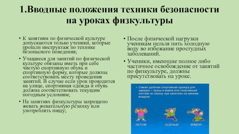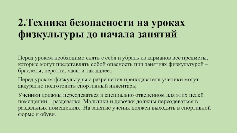 2.Техника безопасности на уроках физкультуры до начала занятий