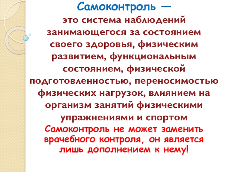 Самоконтроль не может заменить врачебного контроля, он является лишь дополнением к нему!