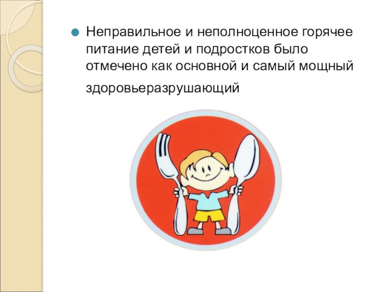 Слайд 4Неправильное и неполноценное горячее питание детей и подростков было отмечено как