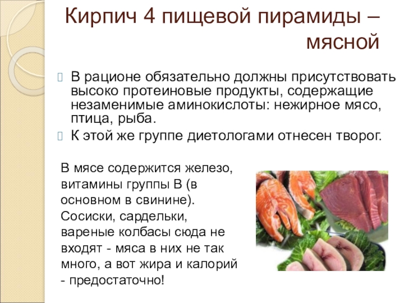 Слайд 11Кирпич 4 пищевой пирамиды – мясной