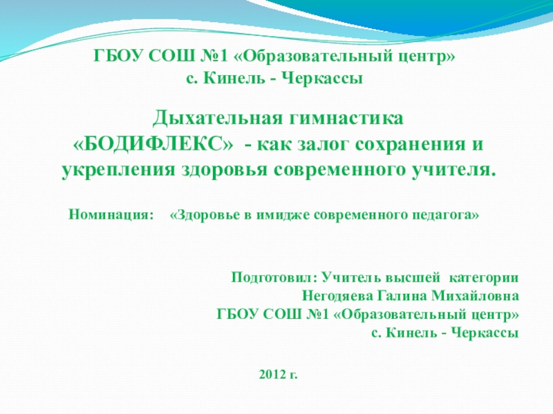 Номинация: «Здоровье в имидже современного педагога»