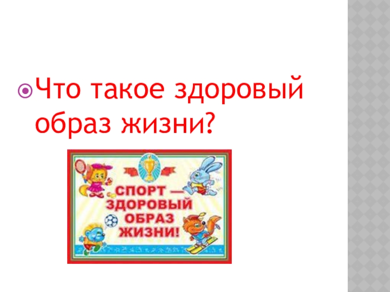 Здоровье — означает не только отсутствие болезней, но и физиче­ское, психическое, духовно-нравственное благополучие.Здоровый образ жизни — привычное