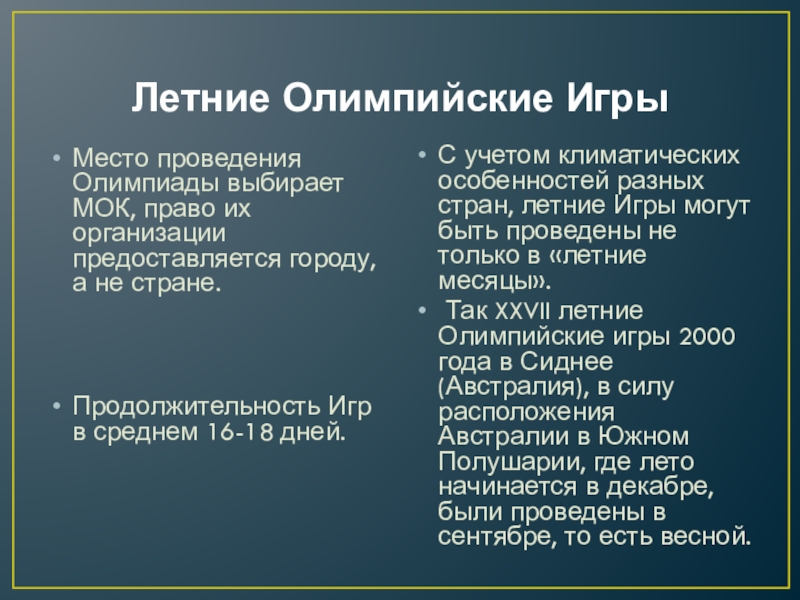 С учетом климатических особенностей разных стран, летние Игры могут быть проведены не только в «летние месяцы».