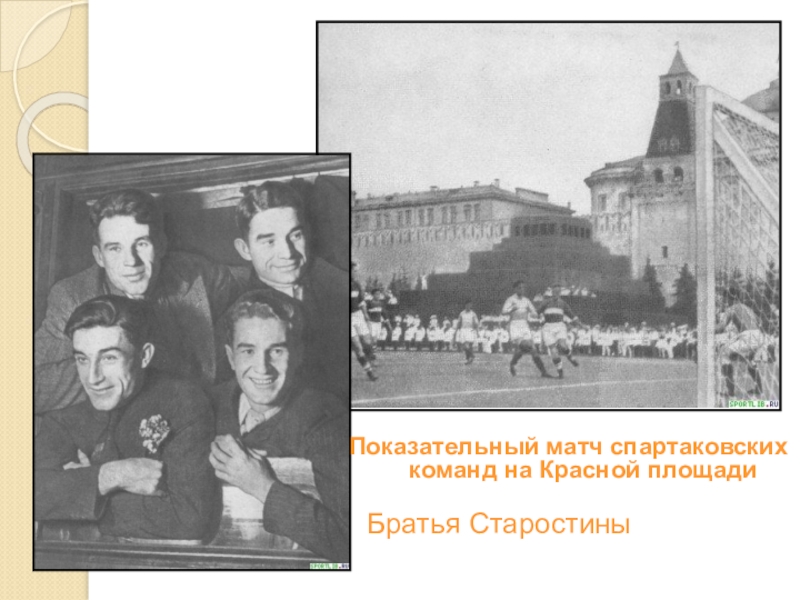 Слайд 9Показательный матч спартаковских команд на Красной площади