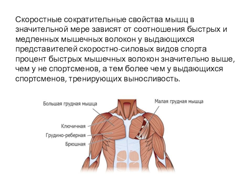 Слайд 10Скоростные сократительные свойства мышц в значительной мере зависят от соотношения быстрых