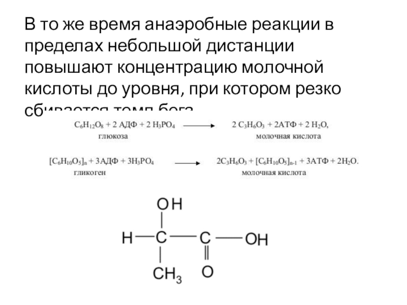 Слайд 18В то же время анаэробные реакции в пределах небольшой дистанции повышают