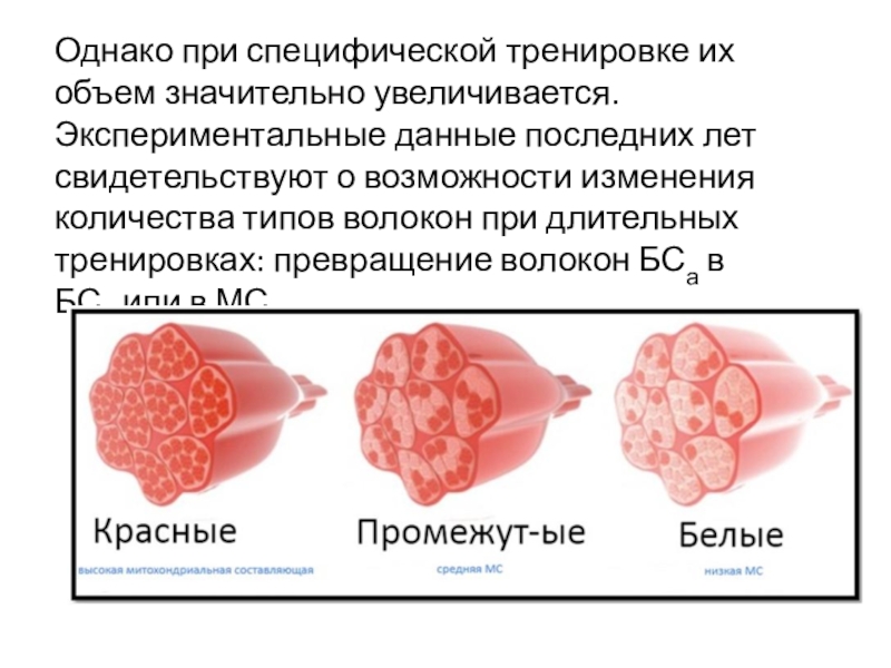 Слайд 16Однако при специфической тренировке их объем значительно увеличивается. Экспериментальные данные последних